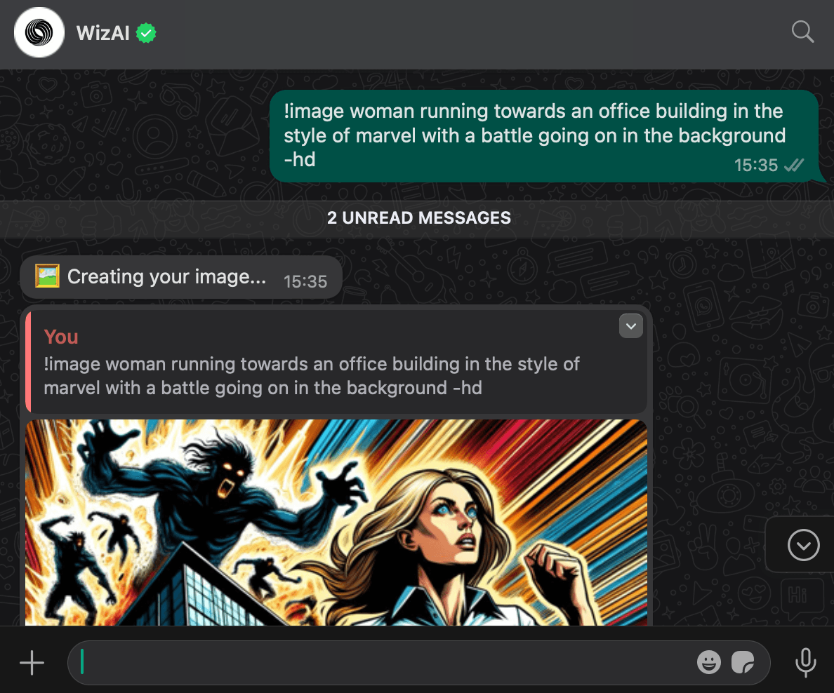 Just type a description and watch your imagination turn into stunning visuals right in your conversation!